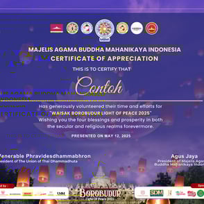 Saya Paramitha Mauina Hartanto selaku PIC divisi sponsorship dan seluruh panitia yang bertugas menyampaikan rasa terima kasih dan penghargaan setinggi-tingginya atas dukungan yang telah diberikan. Dukungan anda turut menyukseskan acara Festival Lampion Waisak Nasional yang terselenggara pada Senin, 12 Mei 2025.